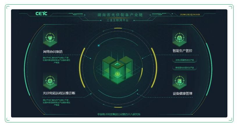在實現(xiàn)光伏全產(chǎn)業(yè)鏈工業(yè)互聯(lián)網(wǎng)平臺的線上協(xié)調(diào)管控之上,樹根科技還為中電48所搭建了全產(chǎn)業(yè)鏈可視化大屏,讓真實的產(chǎn)業(yè)鏈上下游生產(chǎn)運(yùn)營情況直接躍然“屏”上。