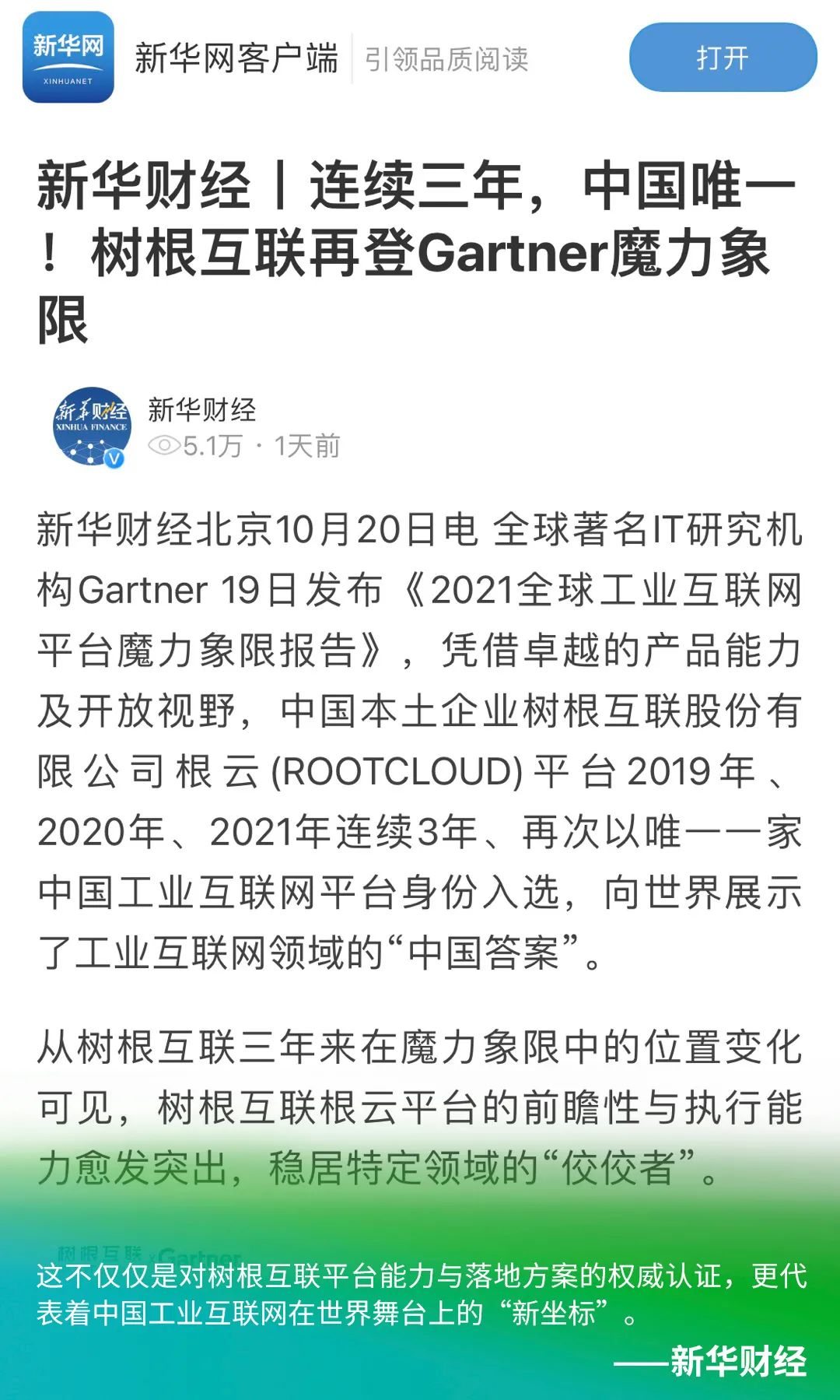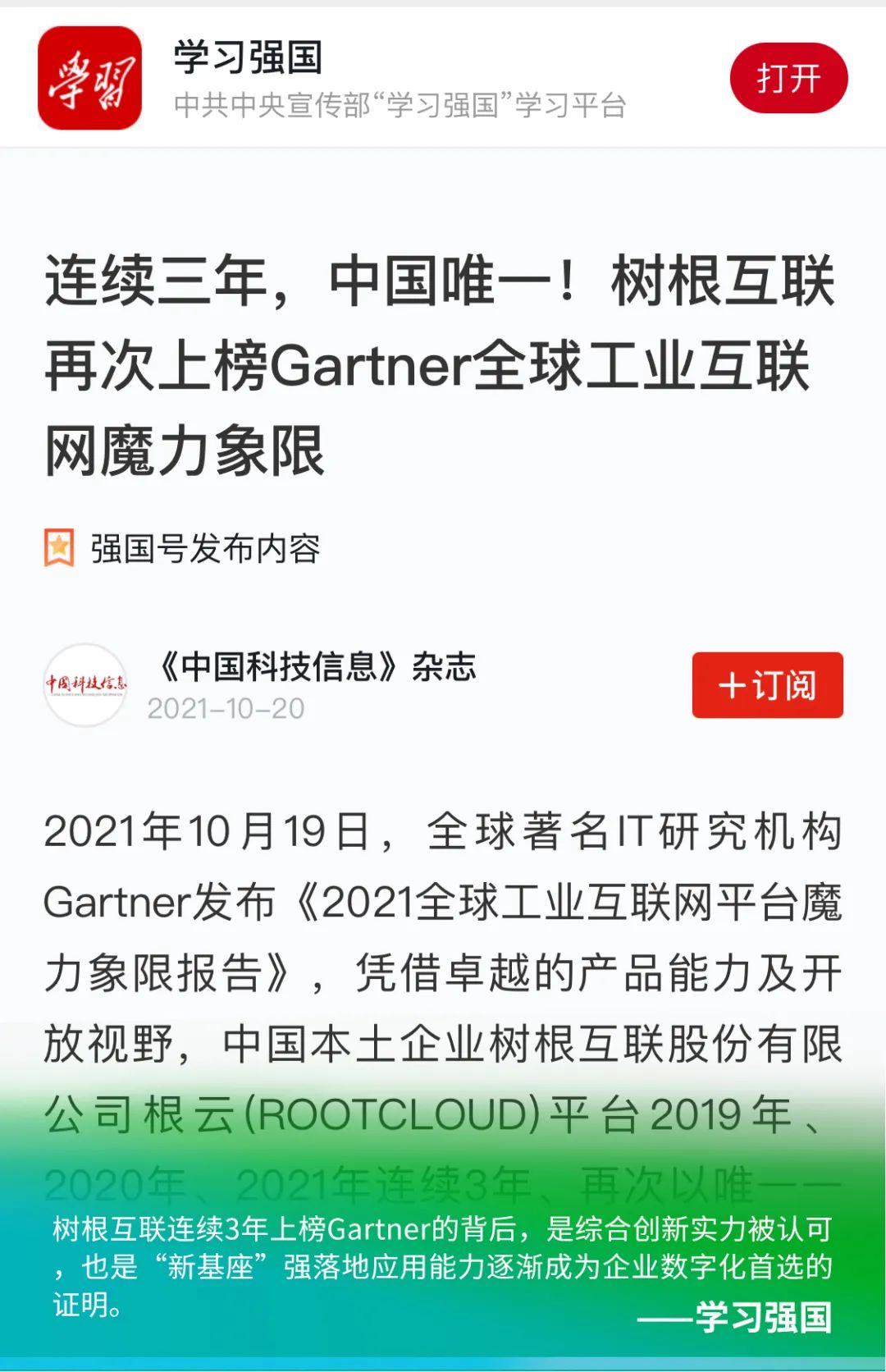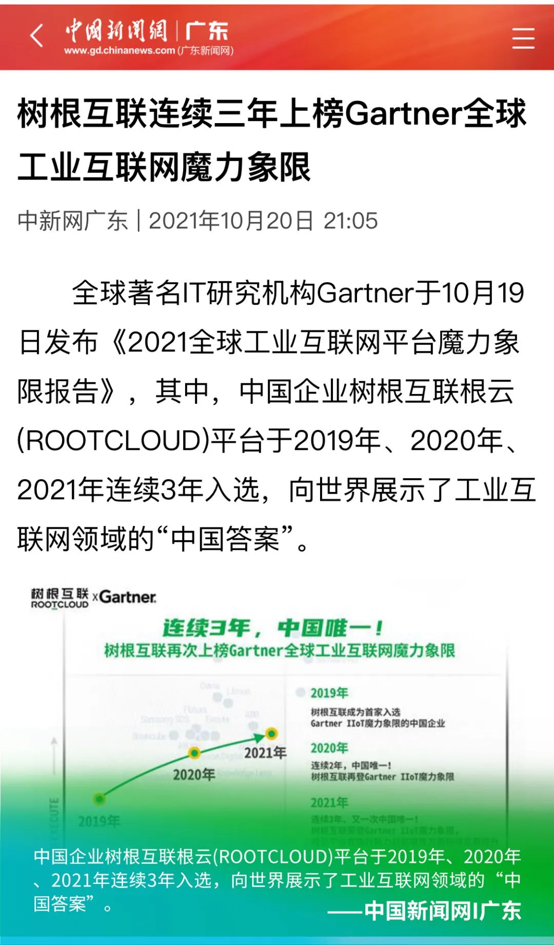 10月19日,全球著名IT研究機(jī)構(gòu)Gartner發(fā)布《2021全球工業(yè)互聯(lián)網(wǎng)平臺魔力象限報告》,樹根科技再一次登榜,穩(wěn)居特定領(lǐng)域“佼佼者”,成為中國唯一三度入選Gartner魔力象限企業(yè),這份工業(yè)互聯(lián)網(wǎng)領(lǐng)域的“中國答案”令人動容。