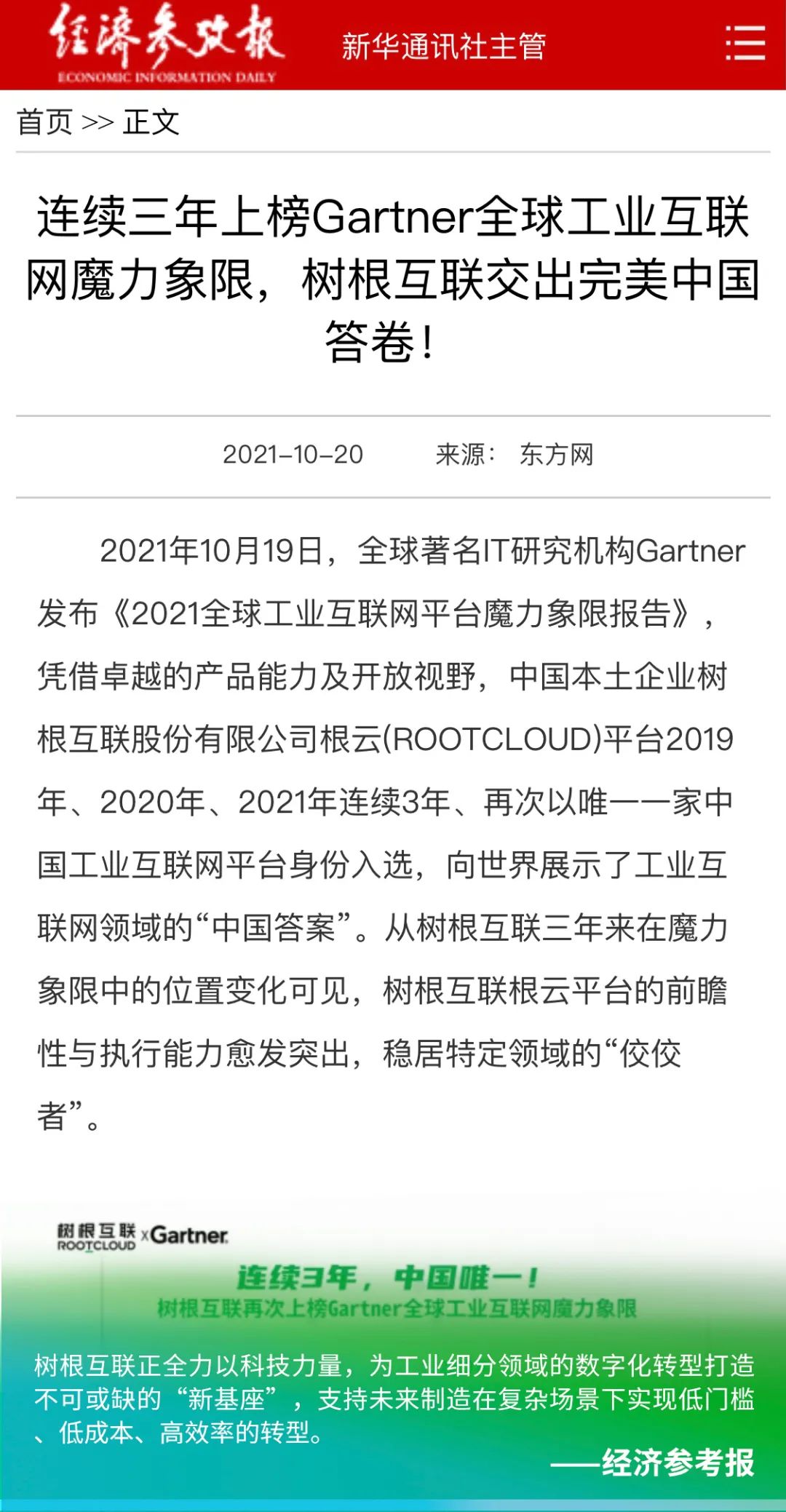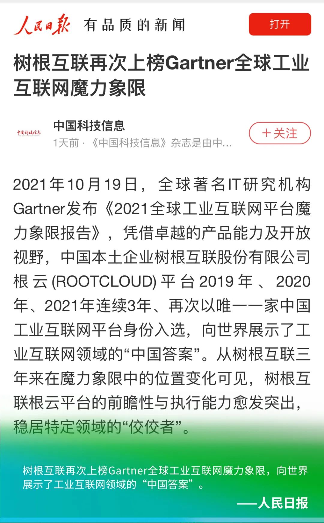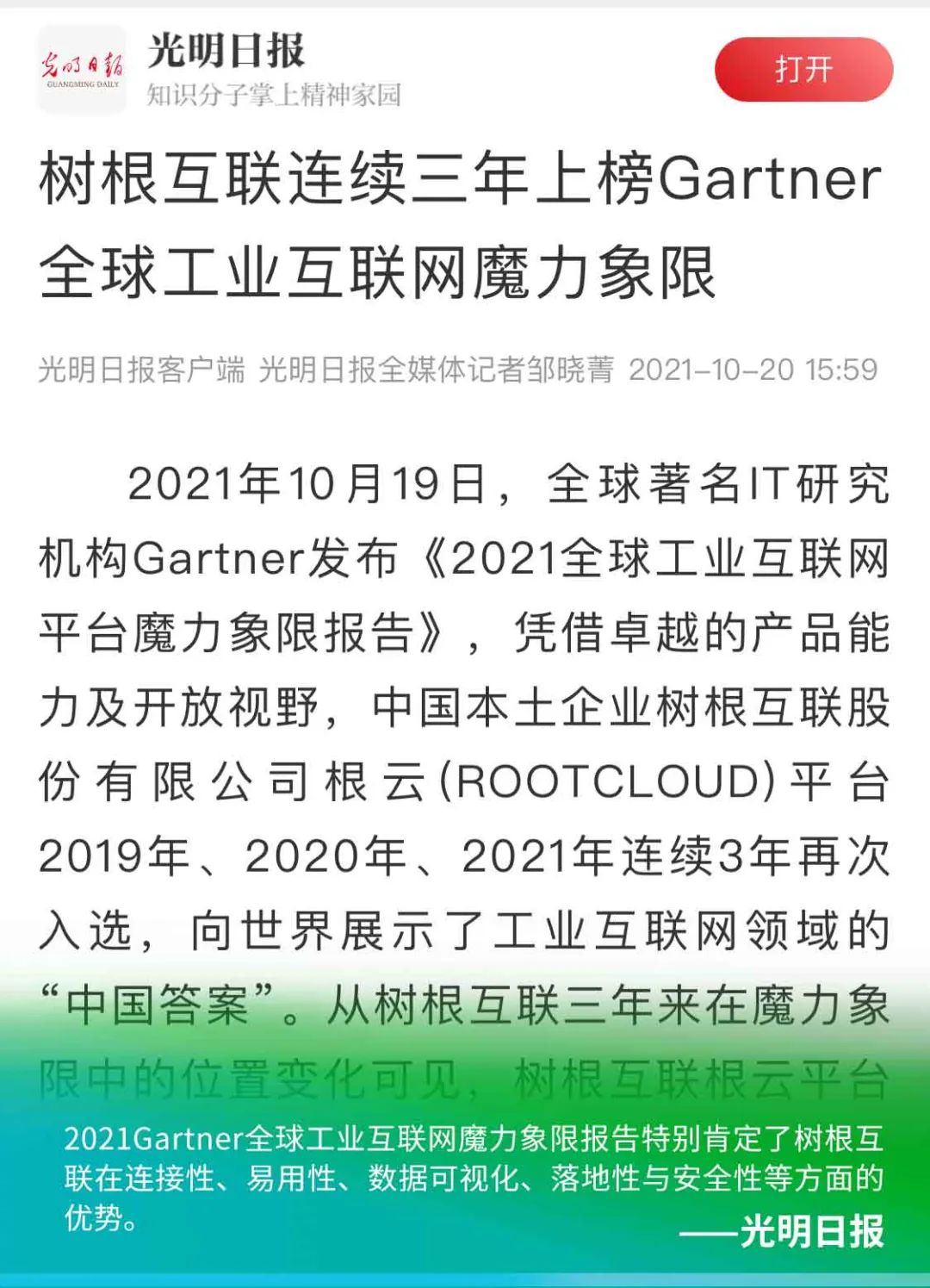 10月19日,全球著名IT研究機(jī)構(gòu)Gartner發(fā)布《2021全球工業(yè)互聯(lián)網(wǎng)平臺魔力象限報告》,樹根科技再一次登榜,穩(wěn)居特定領(lǐng)域“佼佼者”,成為中國唯一三度入選Gartner魔力象限企業(yè),這份工業(yè)互聯(lián)網(wǎng)領(lǐng)域的“中國答案”令人動容。
