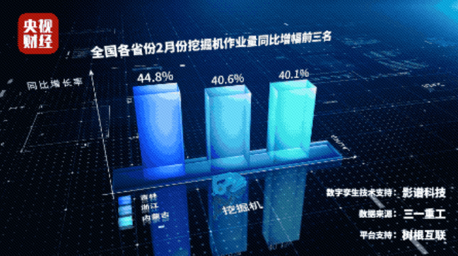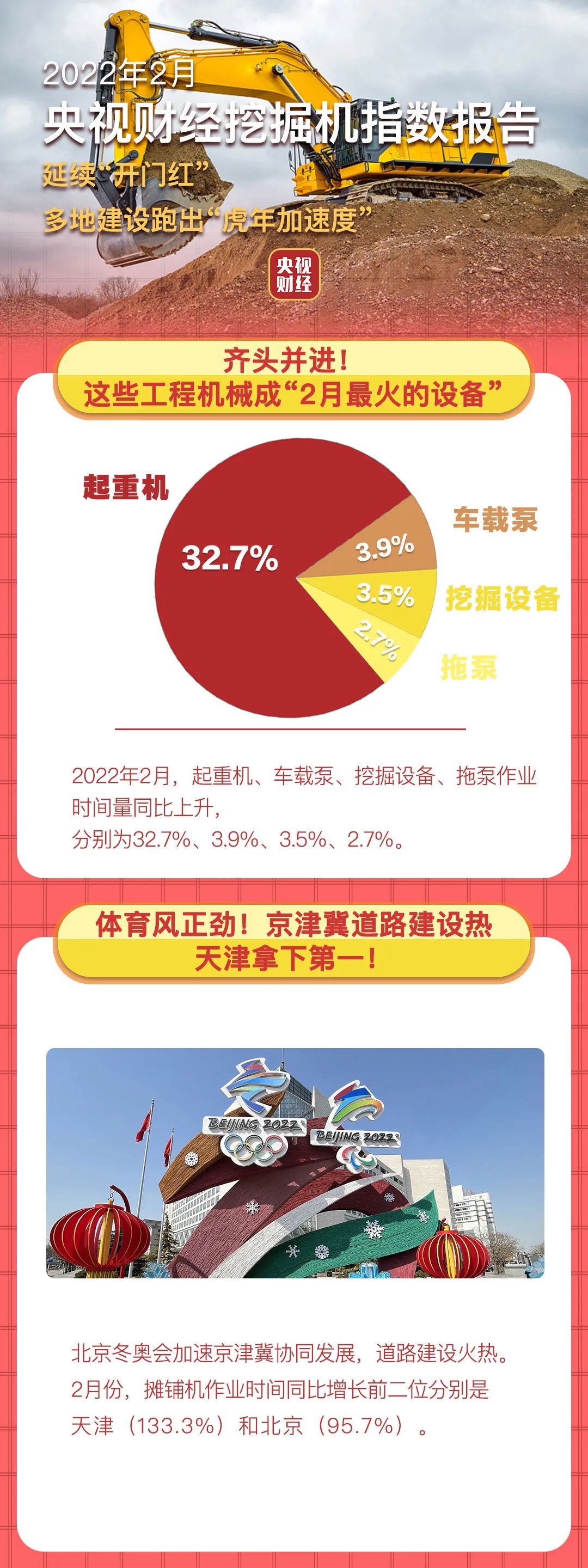 央視財(cái)經(jīng)與三一重工、樹根科技聯(lián)合打造的“央視財(cái)經(jīng)挖掘機(jī)指數(shù)”今天發(fā)布了最新相關(guān)數(shù)據(jù)。2月份,雖然受虎年春節(jié)假期影響,但是我國各類工程機(jī)械作業(yè)量穩(wěn)步增長(zhǎng),多省份工程建設(shè)更是跑出了“虎年加速度”。