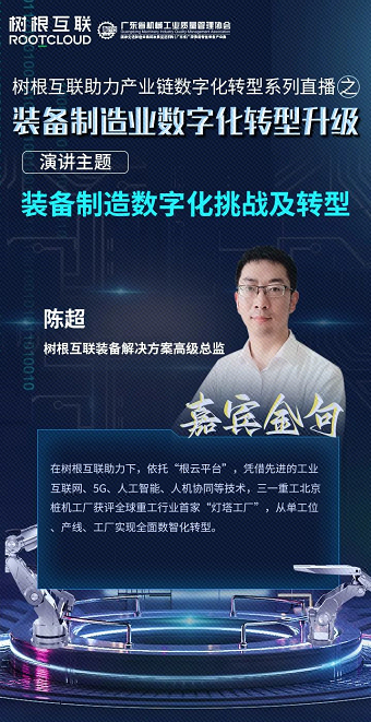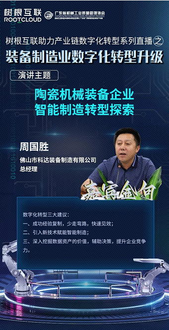 629日,在廣州市鏈長制辦公室(廣州市工業和信息化局)的指導下,樹根科技聯合廣東省機械工業質量管理協會,舉辦樹根科技助力產業鏈數字化轉型系列直播之裝備制造業數字化轉型升級活動。會上,樹根科技、華南理工、科達裝備的專家學者,在線上為行業觀眾分享了自身對于裝備制造業數字化轉型的思考。