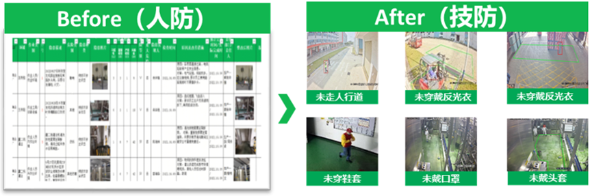 管理成本降低:通過算法告警,規范倉庫工廠進出人員活動,提高工廠管理效率(安全巡檢11小時/周→2.75小時/周,降低75%),保證工廠財物安全