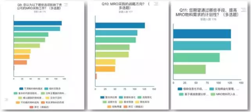 在MRO采購(gòu)戰(zhàn)略方向調(diào)研中,絕大多數(shù)用戶選擇了,整合供應(yīng)商(71%),數(shù)據(jù)標(biāo)準(zhǔn)化(60%),流程簡(jiǎn)化(58%),適度外包(49%)四個(gè)選項(xiàng)。可以看出,用戶期望周邊供應(yīng)商供貨能力和內(nèi)部采供流程、物料信息的標(biāo)準(zhǔn)化需求是非常強(qiáng)烈的,同時(shí)期望適當(dāng)?shù)耐獍軠p少采購(gòu)壓力。