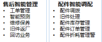 設備智能售后服務:以發電機的業務流程為基礎,考慮發電機行業模式,并結合設備智能運行監控,做到售后智能派單、配件智能調配等智能售后管理。