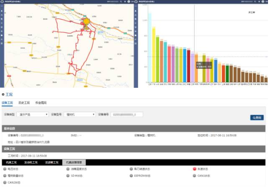 遠(yuǎn)程對(duì)農(nóng)用機(jī)械的整個(gè)生命周期內(nèi)運(yùn)行數(shù)據(jù)進(jìn)行監(jiān)控管理,包括:發(fā)動(dòng)機(jī)、負(fù)載、機(jī)具等運(yùn)行過(guò)程的各項(xiàng)參數(shù)狀態(tài)數(shù)據(jù);