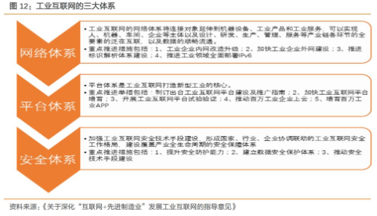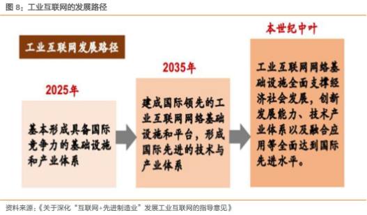 2017 年 11 月底,國務院發(fā)布《關于深化“互聯網+先進制造業(yè)”發(fā)展工業(yè)互聯網的指導意見》,2018 年 2 月 24 日,經國家制造強國建設領導小組會議審議,決定在國家制造強國建設領導小組下設立工業(yè)互聯網專項工作組,由工信部部長苗圩擔任組長,每年召開會議,探討工業(yè)互聯網重大事項。專項小組的成立體現了政策面對工業(yè)互聯網的高度重視,根據去年的《指導意見》,工業(yè)互聯網的發(fā)展將實施“三步走”戰(zhàn)略: