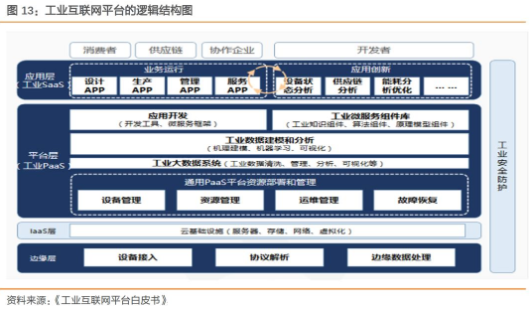2、 工業(yè) PaaS(平臺層)是核心。當前,工業(yè) PaaS 建設的總體思路是通過對通用 PaaS 平臺的深度改造,構造滿足工業(yè)實時、可靠、安全需求的云平臺,將大量工業(yè)技術原理、行業(yè)知識、基礎模型規(guī)則化、軟件化、模塊化,并封裝為可重復使用和靈活調用的微服務,降低應用程序開發(fā)門檻和開發(fā)成本,提高開發(fā)、測試、部署效率,為海量開發(fā)者匯聚、開放社區(qū)建設提供支撐和保障。