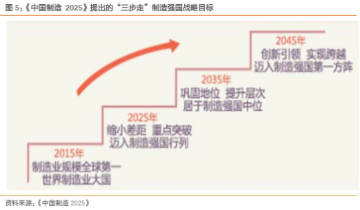 制造業(yè)是國民經濟的主體,是立國之本、興國之器、強國之基。2015 年 5 月 19 日,國務院印發(fā)《中國制造 2025》,部署全面推進實施制造強國戰(zhàn)略。這是我國實施制造強國戰(zhàn)略第一個十年的行動綱領?!吨袊圃?2025》提出,通過“三步走”實現制造強國的戰(zhàn)略目標:第一步,到 2025 年邁入制造強國行列;第二步,到 2035 年我國制造業(yè)整體達到世界制造強國陣營中等水平;第三步,到新中國成立一百年時,我國制造業(yè)大國地位更加鞏固,綜合實力進入世界制造強國前列。
