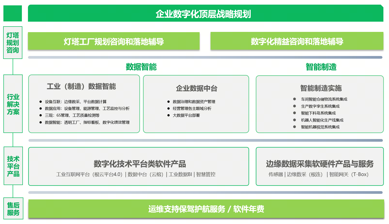 面向泛裝備行業(yè)的增效、降本、提質(zhì)等核心訴求,圍繞工業(yè)互聯(lián)網(wǎng)、數(shù)字化、智能化、自動(dòng)化、信息化的深度融合,以智能制造和燈塔工廠為切入點(diǎn),提供從整體規(guī)劃到實(shí)施落地的整體解決方案